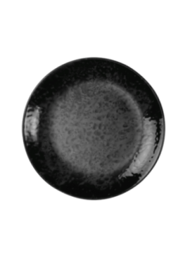 En snygg djup tallrik i svart med mörkgrått inslag i dekoren som ger ett elegant intryck.