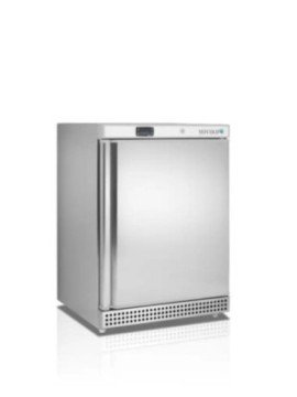Rostfri förvaringskyl med fläktkyla. Dörren är vändbar. Försedd med lås, elektronisk termostat, flyttbara hyllor samt justerbara fötter.