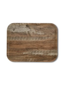 Mörk bricka 43x33 cm i laminerat kraftpapper med en matt texturerad finish för en mer äkta look. Brickan fungerar utmärkt i olika typer av serveringsmiljöer och tål temperaturer mellan 10°C - 100°C. Framtagen för att tåla dagligt slitage.